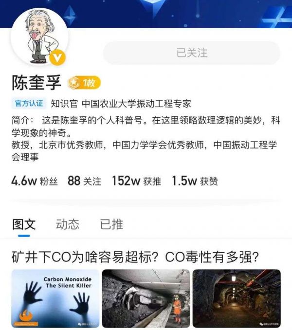 中国农业大学应用力学系教授陈奎孚,就是这样一位专攻硬核领域“疑难杂症”的创作者。在成为腾讯新闻知识官后,陈奎孚利用课余时间发布了近千条短内容,他的个人主页里,充满了各种“奇怪”的知识点。