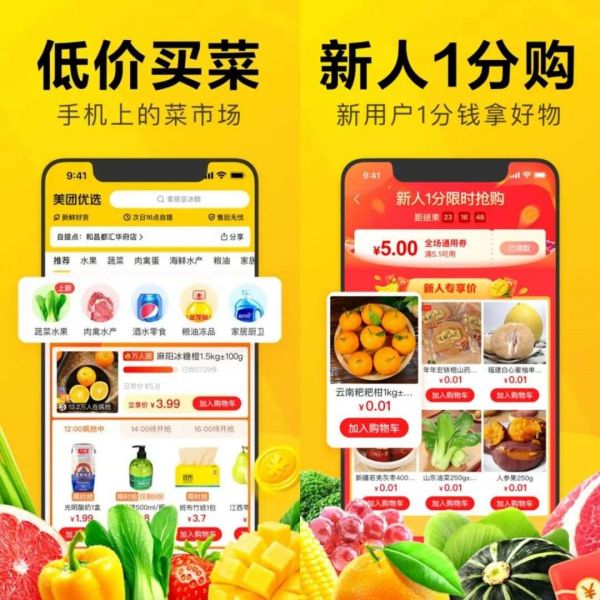 相比于其他的社区团购产品,比如多多买菜和橙心优选,美团优选在页面设计上更加简洁,并且突出其主要的商品类别,让用户一目了然的进行挑选。并且对于新人而言,也拥有很大的优惠,比如新人可低至1分钱进行购物。