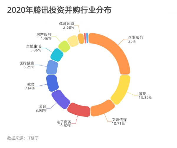 2020 这一年,截止到 12 月初,腾讯已出手超过 120 次,其中包括 7 次并购。