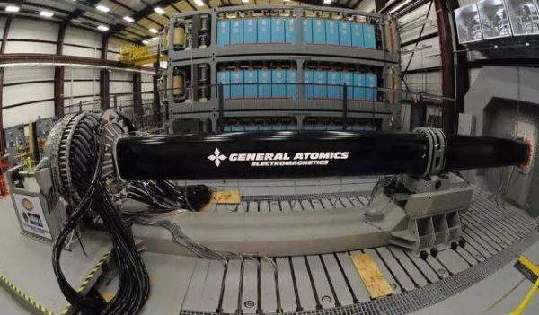 这门炮从充电到发射大约10秒,周围那些铁盒子都是供电储能装置,整个电磁炮庞大无比。据说,美帝大约是这个德性:弹体10kg,初速2500m/s,炮口动能32MJ,平均加速度31800g,最高加速度45500g,单发充电142MJ,放电80MJ,转换到炮弹的动能32MJ。据说,土工06年1MJ,10年大约7MJ,16年赶上美帝,但发射间隔要45秒。是不是真的就不管了,咱先搞明白这些数字的意义。