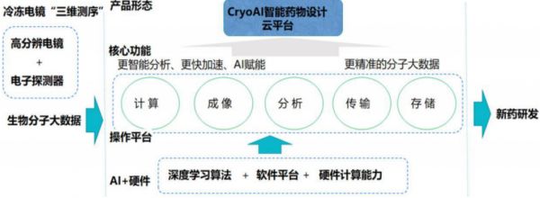 冷冻电镜在解决分子成像大数据来源问题的同时,AI则可解决图像大数据分析和药物设计问题,两项技术交叉运用能让解析蛋白结构的工作效率和效果大大的提高,将极大加速药物研发:筛药初期,对药物设计提供可靠的靶点,为小分子药物指明方向;药物设计后期,也能直接提供结构生物学的证据。