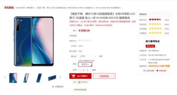 2699元起,董明珠终于发布了5G手机,官网两天只卖出75台