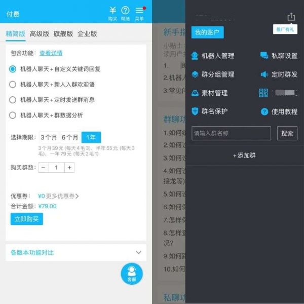 另外,微信签约服务商的服务价格也较贵,「新熵」接触到的一家服务商,报价为每个号每年1499元,单价根据企业购买数量有所递减,其他服务商的价格也相差不大。以前的WeTool,其基础付费版价格为每号每年799元,该价格在诸多外挂产品中属于较高的,相当于企业的群控成本至少翻了一番。
