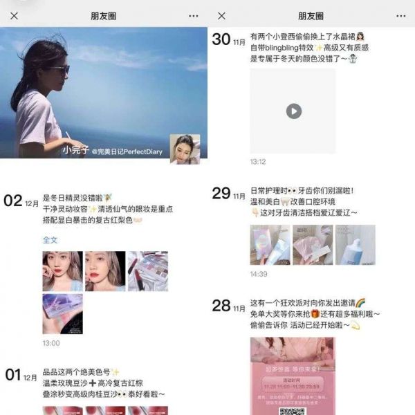 以完美日记企业微信为例,用户可以查看官方运营客服小完子的历史朋友圈,用户可能无法发现异样,但问题是,正常情况下,企业微信并不支持查看历史朋友圈,仅支持查看当日朋友圈。