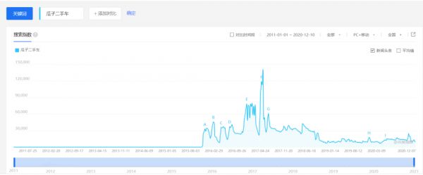 不过,百度指数还记录着瓜子二手车曾经有过的辉煌战争。