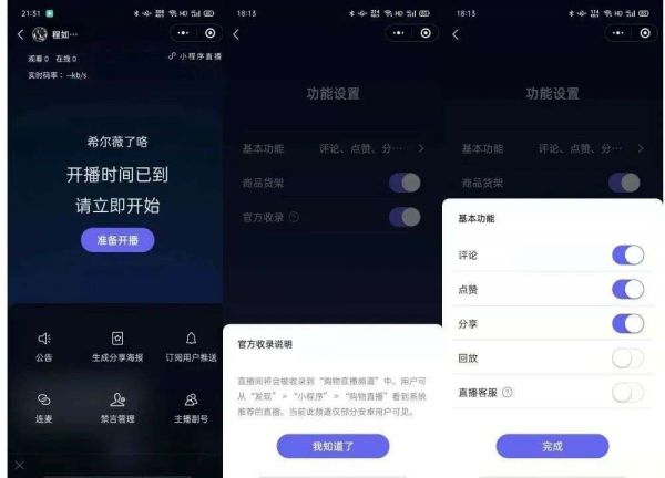 在视频号直播功能上线前,微信内的直播主要还是依托于微信官方的“小程序直播”小程序以及接入官方的“小程序直播组件”来实现的。