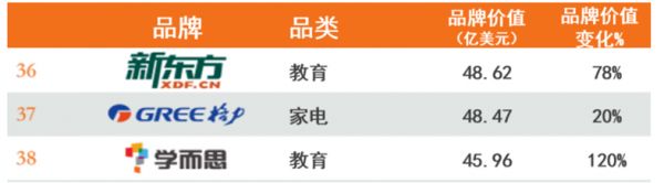 图1:新东方位列2020年BrandZ最具价值中国品牌排行榜第36位,力压学而思,资料来源:BrandZ、百度