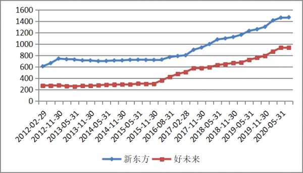 图4:新东方和好未来线下学习网点数量,资料来源:东方证券研究所