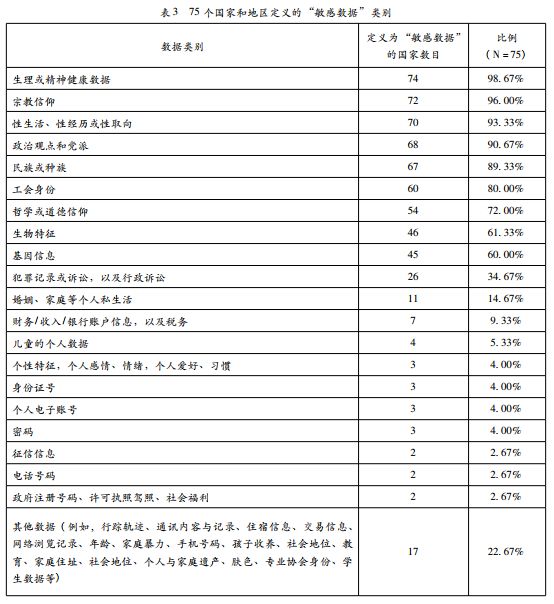 武汉大学的王敏老师曾经做过统计,大多数国家和地区同意将“生理或精神健康数据”“宗教信仰”“性生活、性经历或性取向”视为敏感数据,但将“征信信息”“电话号码”“执照驾照”纳入敏感数据范畴的国家只有两个。