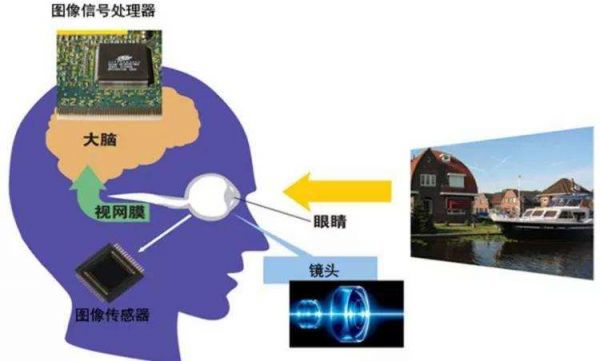 和生物视觉的实现方式一样,图像视觉的处理过程也基本按照这一过程实现,包括收集光源的镜头、将光信号转化为电信号的图像传感器、对图像电信号进行数字处理的ISP芯片以及现在能对图像进行进行分析识别的当红辣子鸡的AI芯片。