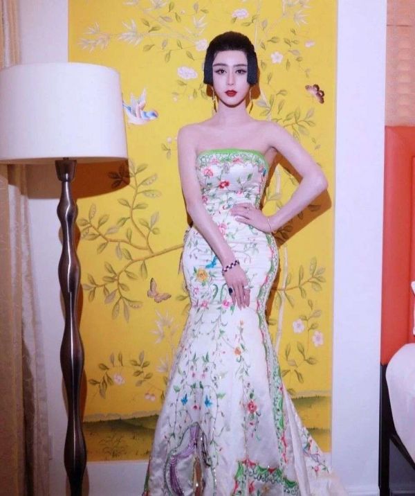 ▲ 夏冰模仿范冰冰戛纳刺绣瓷娃娃造型