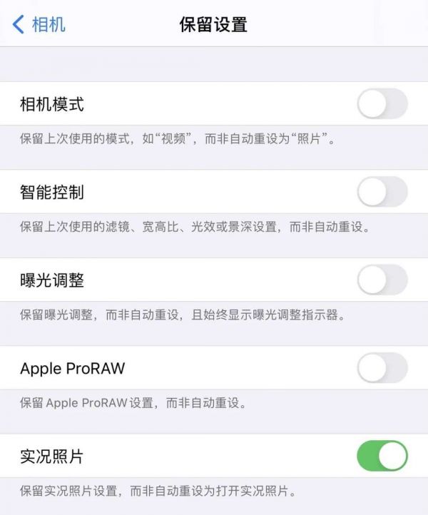 使用 Apple ProRAW 拍摄的照片为 12-bit 的 RAW 文件,并以 DNG 格式存储。在相册中,你也能通过屏幕上的标识来区分 Apple ProRAW 照片或直接编辑它们。一张 Apple ProRAW 照片的大小在 25MB 左右,对于存储空间吃紧的用户来说或许不太友好,不过相机启动时默认会关闭 RAW 格式拍摄,需要点击左上角的 RAW 标志启动。如果你希望每次都直接拍摄 RAW 照片,需要在「设置 - 相机 - 保留设置」中打开 Apple ProRAW 开关。
