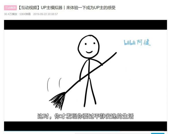 在阿健制作的一个名为“up主模拟器”互动视频中,阿健罗列了一系列在成为up主的过程中可能需要面对的问题和需要进行的选择。在视频接近尾声时,阿健说道:“你发现身处流量的洪流往往会带来焦虑,这时,你才发现你要过平静安逸的生活。”