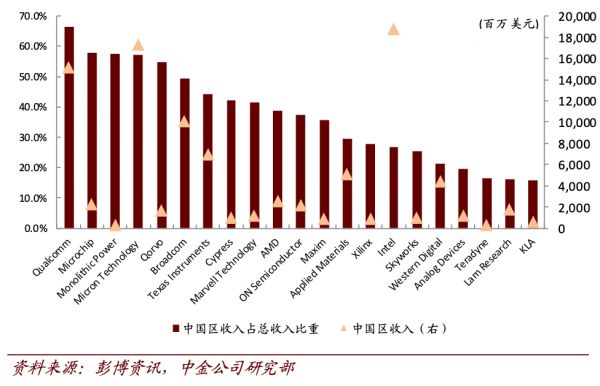 而美国半导体企业在中国市场占有率达48%,高通、Microchip、美光、Qorvo等美企的在华收入占比超过50%,美国半导体毛利率达54%。