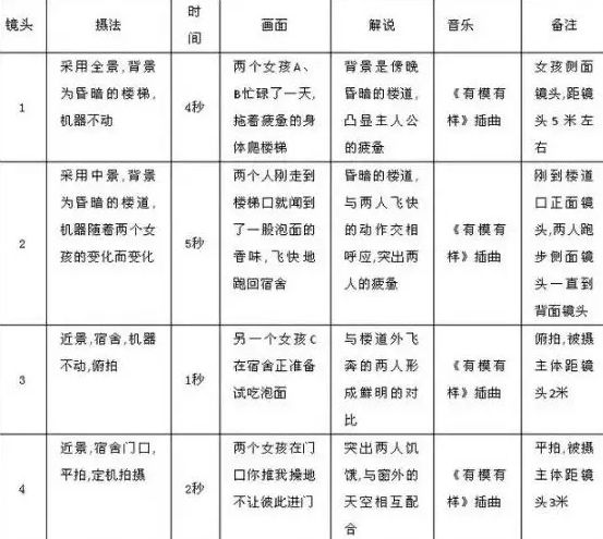 而短视频剧本就更完善了,甚至已经接近影视剧剧本。拍摄手法、画面、解说、音乐都非常详尽。
