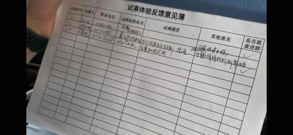 在试乘时看到的普通民众反馈表