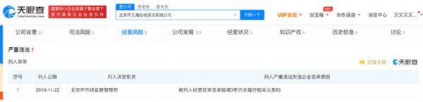 值得注意的是,目前王海持股20%的北京市王海在线资讯有限公司于2019年11月被列入严重违法失信企业名单,列入原因为“被列入经营异常名录届满3年仍未履行相关义务的”。