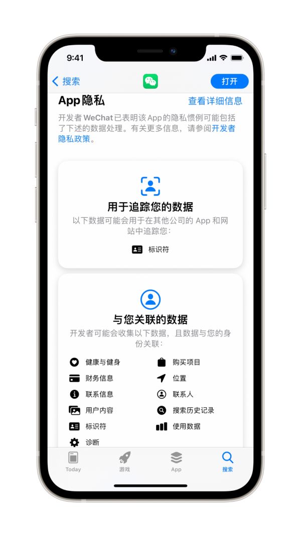 出于对用户个人隐私的保护,苹果在App Store的软件页面中加入了App隐私的详细资料。对于已经更新相关信息的软件,用户可以看到软件在使用过程中会收集你与手机的哪些资料?收集的资料将用于哪些目的?哪些软件功能需要哪些权限也明明白白地列了出来。