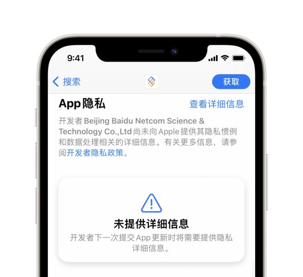 为了让用户在下载软件前可以清楚了解软件的隐私条例,苹果还在App Store中加入了隐私政策的栏目,在这里可以直接跳转到软件开发者的隐私条例界面,让用户可以更清楚的知道个人信息的去向。
