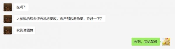 试想一下,正值寒冬腊月。一个三线互联网企业的程序员,好不容易下班顶着冷风,挤着地铁回到20平方的出租屋里头,准备好好享受夜晚时光。突然,你的手机响了,是微信消息通知。犹豫之下,你还是打开了对话框,迎面而来的是客户需求三连,结尾是“收到请回复”,加班无可避免。