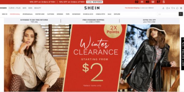 SheIn美国官网促销,价格低至2美元起/SheIn官网