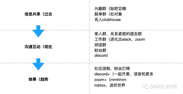 虽然大部分公共社群的形态是以兴趣社交社区形态呈现的。以前比如贴吧、豆瓣小组都是以获取垂直信息,辅助互动为主。在以前信息匮乏时候可行,大家通过共享信息来获取知识和互动。不过现在问题在于,信息已经过剩,如果更多是以获取信息为主的话,那么就容易被更高效的内容平台替代。如果是想要互动的话,没有贡献优质内容的用户也比较难有社群中的存在感。