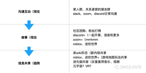 而做事代表了社群趋势,其实本质上做事像是工具,就是让社群聚集沟通之后完成达成目的最后一步。比如zoom是基本的沟通,那zoom+就要解决沟通之后的事。比如discord是日常游戏交流,那么约玩加语音开黑甚至游戏分发就帮助玩家能够达成和人一起打游戏的目标。形成一个闭环。