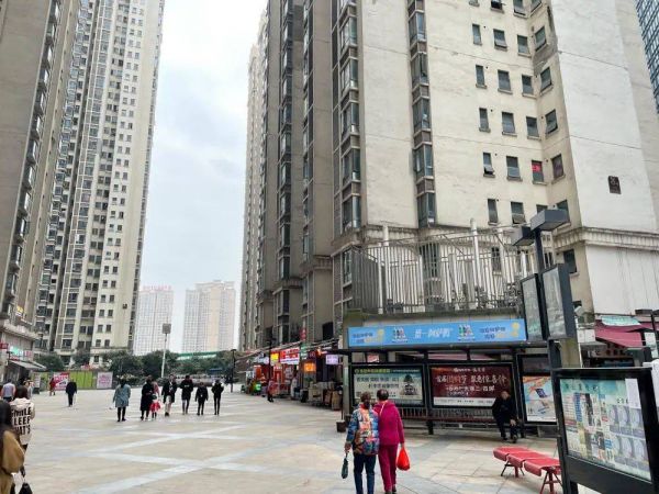 这里的魔幻之处,一是“大”,它可能是亚洲规模最大的小区,盛名在外,在贵阳这个西南地区省会城市,简直到了“每个贵阳人都有住在花果园的亲友”的程度;二是“挤”,高楼之间的间距仅能容下窄小的步行道,两百多座高楼,容积率达到夸张的6.8;三则是“反差”,现代化的生活,与谈不上人性化的社区环境的反差,在超高密度之下,遍布社区的各类商店、穿梭而行的外卖小哥,都在表明着居民与管理者用现代的方式,去抵消超高密度社区先天的不利影响。