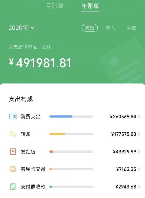 微信年账单来了:一边说着没有钱,一边花了 10W+