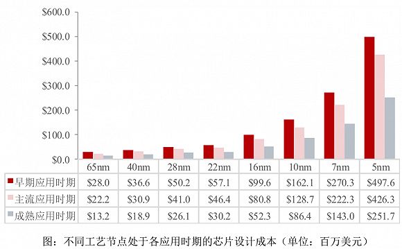根据摩尔定律,半导体的芯片生产到10nm以下时,就会受到来自技术、设计和经济应用各方面的挑战。梁孟松主张将半导体工艺向3nm更低线宽演进的技术路径,在设备成本和设计成本上都体现了不经济性。设计方面,7nm的主流应用时期的单颗芯片研发成本相比28nm上升了近5倍。而在设备端,ASML的EUV光刻机更是一机难求。