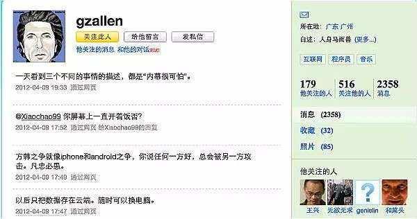 这个叫@gzallen 的饭否用户,就是张小龙。