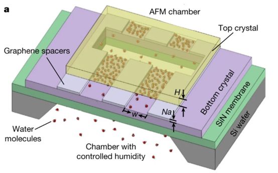 海姆团队精心构建分子尺度的毛细管,将云母和石墨的原子级薄片晶体叠放起来,每层之间用窄条石墨烯隔开。用这种方法,团队制造了不同高度的毛细管,包括只有一个原子高的毛细管——刚好足以容纳一层水分子,这是可能的最小结构。