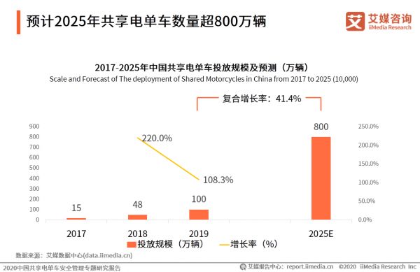 图表:2017-2025年中国共享电动车投放量预测 来源:艾媒报告
