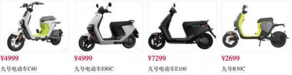 图片:九号公司电动自行车不同类型对应售价 来源:互联网