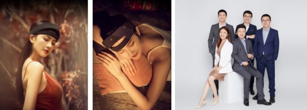 脑陆科技消费级睡眠产品(左图、中图);脑陆科技合伙人团队(右图)