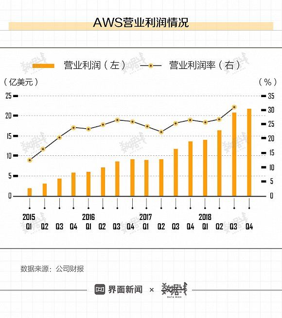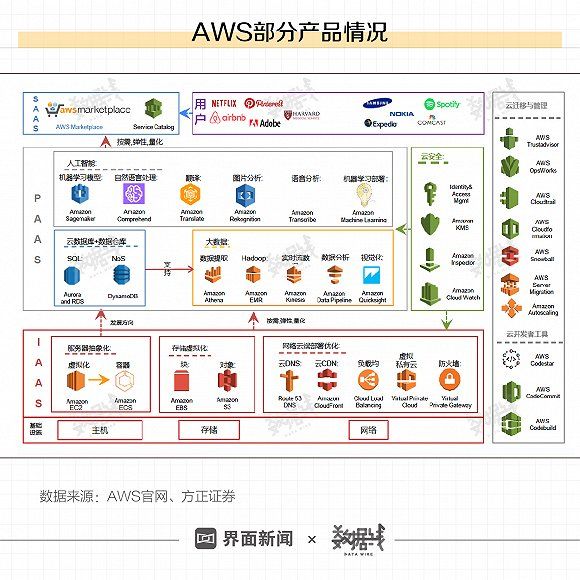 相比海外购和全球开店业务,对于亚马逊而言,AWS(Amazon Web Services,以下简称AWS)是真正的“盈利担当”。据亚马逊官网,AWS业务起步于2006年,主要以Web服务的形式向企业提供IT基础设施服务,也就是通常所说的云计算。