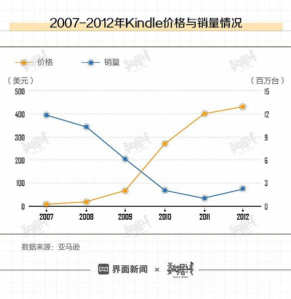 据亚马逊《KINDLE如何点燃图书世界》(HOW THE KINDLE SET THE BOOK WORLD ON FIRE),在2007年,销量不足300万台的Kindle,到2012年销量已超1200万台。