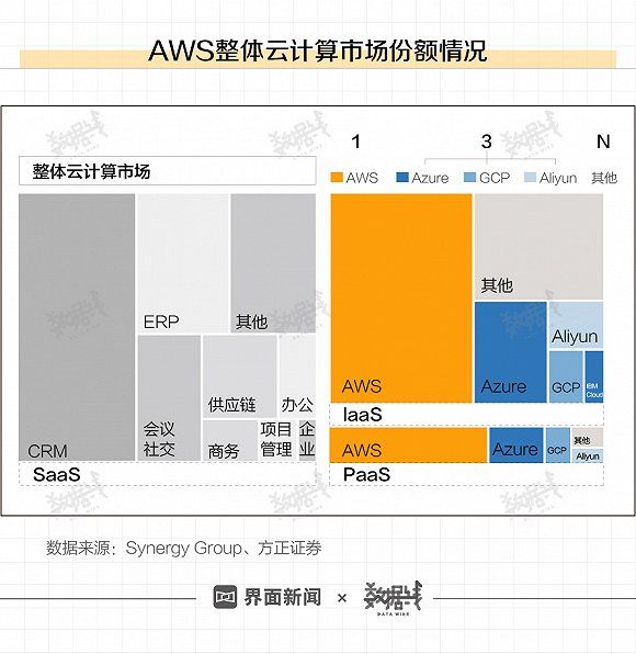 从市场份额来看,发展已十年有余的AWS在云计算市场IaaS(Infrastructure-as-a-Service,基础设施即服务)和PaaS(Platform-as-a-Service,平台即服务)上可谓一骑绝尘,远超微软Azure,谷歌云平台GCP和阿里云Aliyun。