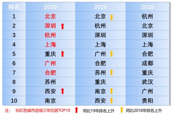 根据IDC调查报告显示,2020年中国人工智能算力排行Top 5的城市依次为北京、深圳、杭州、上海、重庆,排名 6-10 的城市为广州、合肥、苏州、西安、南京。与 2019 年相比,深圳超过杭州位居第二,重庆进入第一梯队,西安超过南京排名第 9。