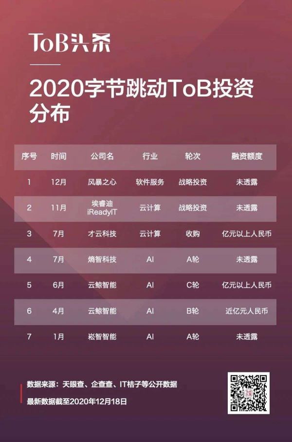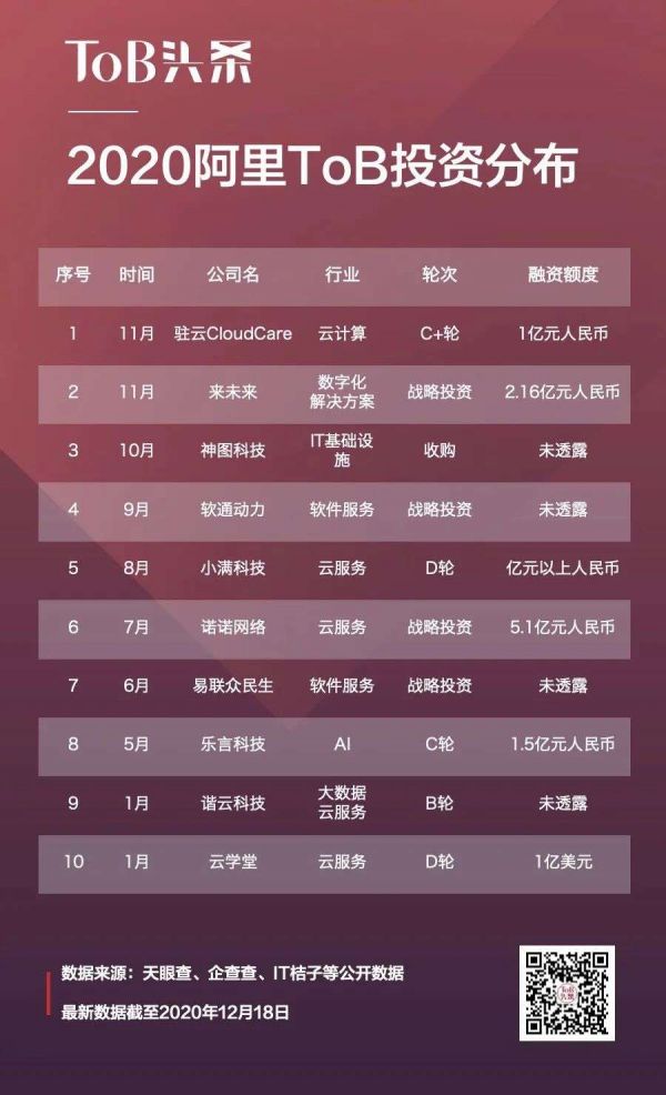 2020年虽然是市场寒冬,但并不影响互联网大厂们在ToB投资市场上热情如火。