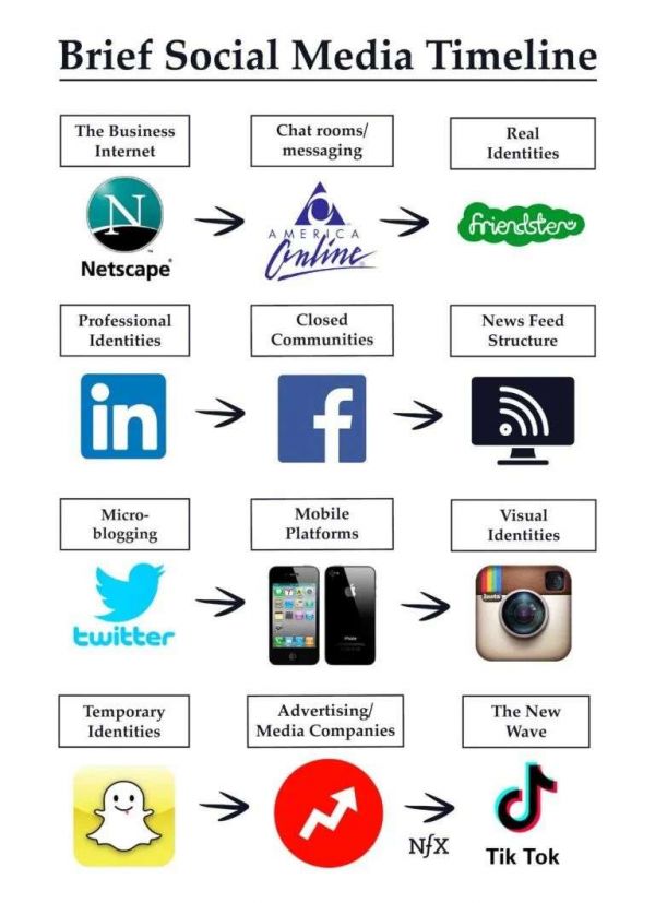 社交产品从个人主页和小型网站开始,发展到博客、即时通讯和聊天室。随后,社交产品发展到早期版本的社交网络,在那里你可以为工作(LinkedIn)或现实生活(Facebook)创建一个动态的在线 "真实 "代表,并提供状态更新和新闻源。
