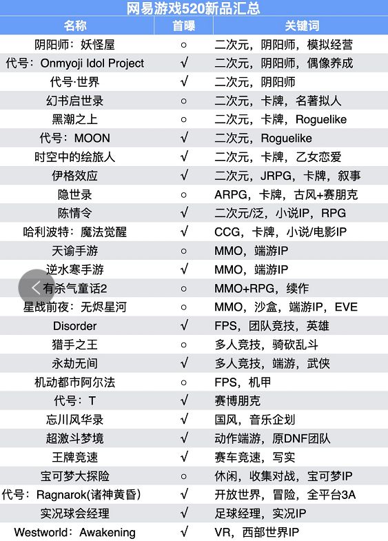 从产品战略来看,网易更希望二次元卖人设式的商业成功,对标去年的《明日方舟》和今年的《原神》。翻看之前520发布的27款新品,其中“卖人设抽卡”这个模式的自研产品线占比近半,如果排除IP授权产品相关,这个比例超过70%。