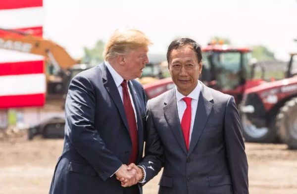 图:美国总统特朗普和富士康首席执行官郭台铭出席富士康在威斯康星工厂的奠基仪式