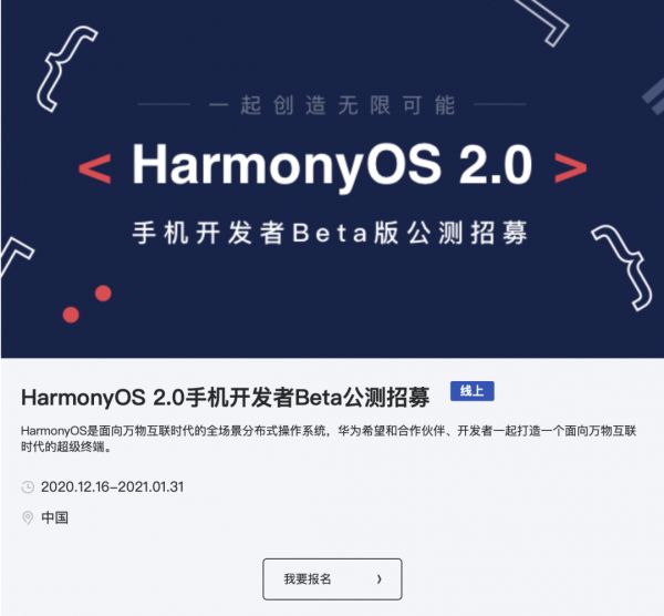 从12月16日起,华为面向开发者提供了两种下载方式:一种是从HarmonyOS官网下载DevEco Studio 2.0 Beta3版本,运行该版本自带的远端模拟器即可。另一种则是去官网报名参加HarmonyOS 2.0手机开发者Beta活动,审核通过后你会收到官网发送的公测邀请邮件,根据邮件内容指引,即可获得OTA推送。