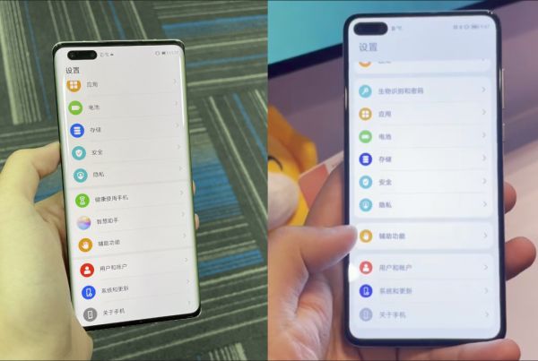 我们再来看一张对比图,左侧为搭载EMUI 11的Mate 40 Pro,右为搭载HarmonyOS 2.0的华为手机。从这两张图片不难看出,两者在操作界面上没有本质不同,不管是电池、存储、安全、隐私等图标,还是全面屏手势操作逻辑,HarmonyOS 2.0都和EMUI 11相仿。