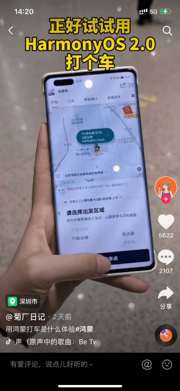 最近,抖音上有网友录了一段HarmonyOS 2.0的华为手机打车的体验视频。该视频中展示了华为的分布式技术,通过这项技术,华为手机和手表之间可以实现动态、消息的同步。