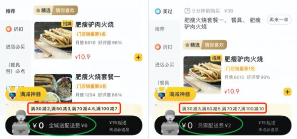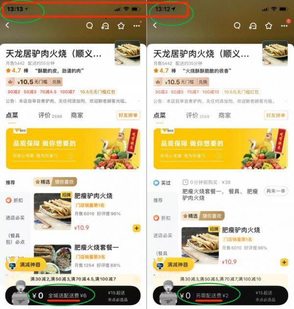除了价格差异,主要是哪个配送费名目。一个是「全城送配送费」,一个是「配送费」。