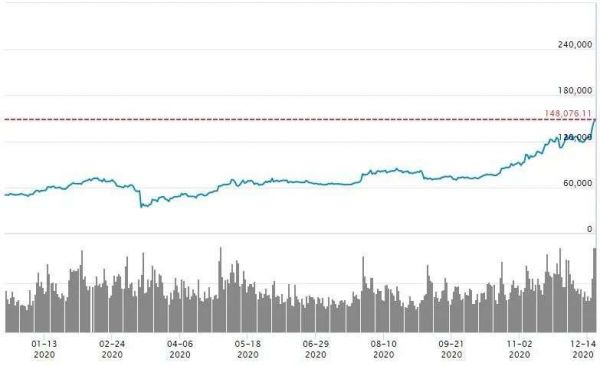 12月16日晚间,比特币强势站上20000美元大关,刚创下历史纪录;12月17日,比特币又一路飙涨,持续上破21000美元、22000美元、23000美元新高。