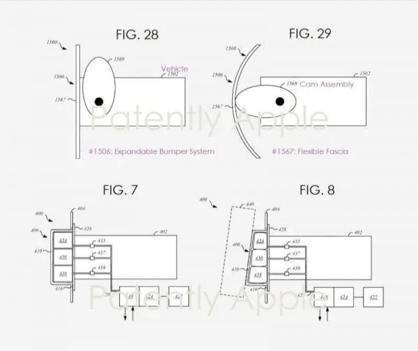 同样做出改变的还有车辆外部的保险杠。和传统固定式的保险杠不同,如果发生车辆碰撞事故,苹果汽车的保险杠可以根据碰撞来发生改变,以吸收冲击力避免损坏车辆。