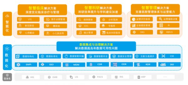 据悉,公司已逐渐形成了契合国家卫健委标准要求的“1+3+N”智慧医疗体系,能帮助医院完成从单点到整体,底层到应用的智慧医院建设。其中,“1”指的是数据集成与治理解决方案,它能帮助医疗机构对数据进行汇集、标准化,作为未来能够支撑批量应用的数据中台;“3”指的是智慧临床、科研和管理相关的三个解决方案,它们属于智慧医院建设的核心;“N”指的是未来能够深入到医疗方方面面的应用场景。